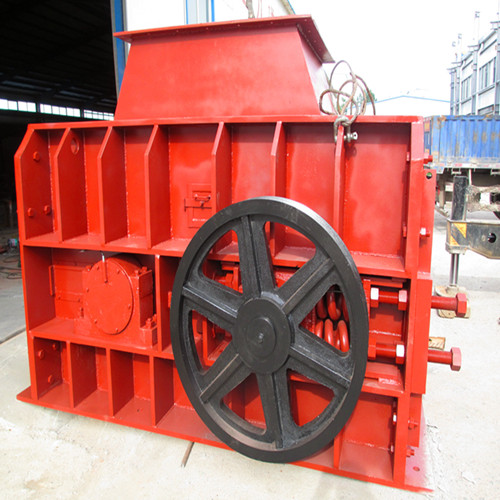 被破碎物料经给料口落入两辊之间依靠摩擦力的作用被带入辊子之间,进行挤压破碎,成品物料自下部落下。
